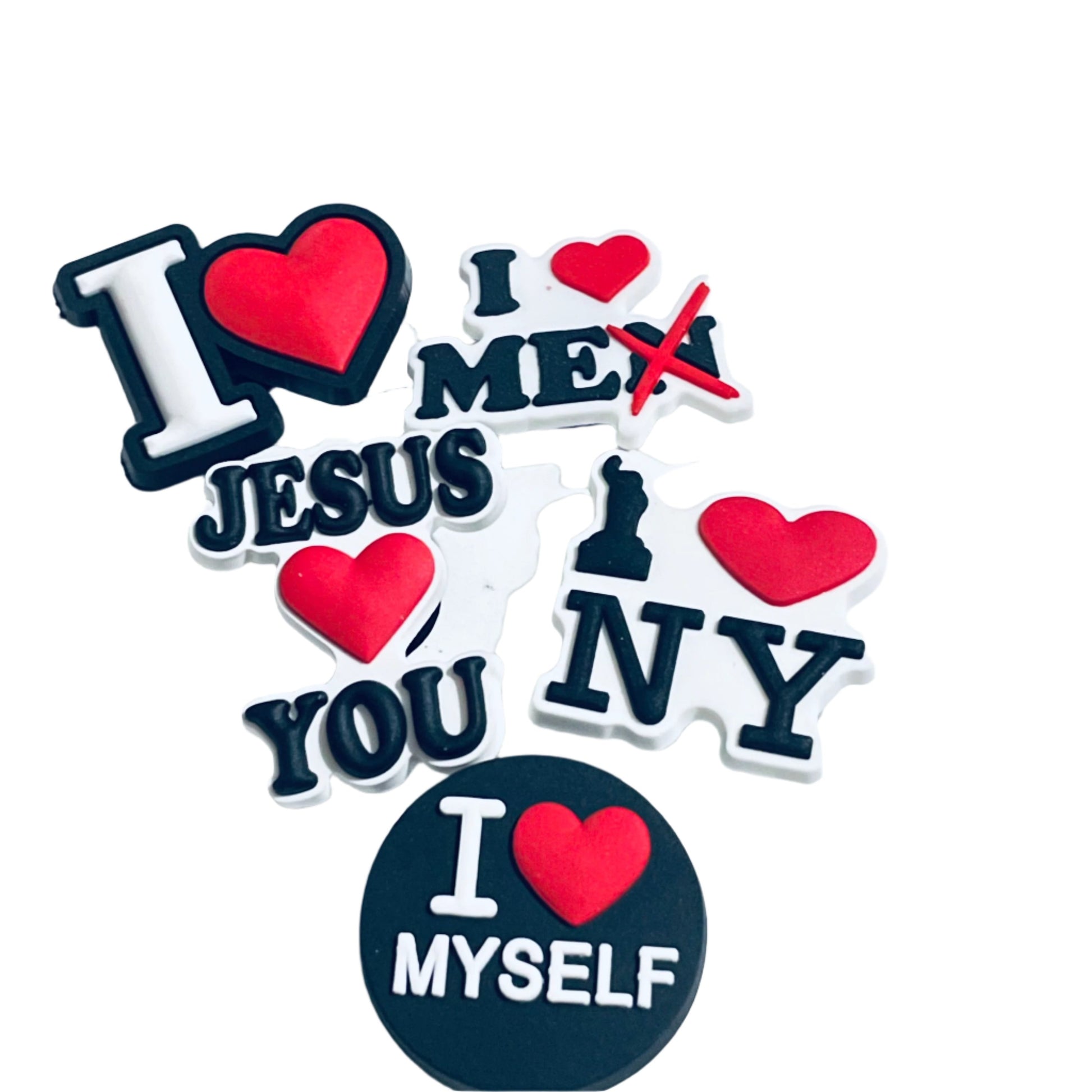 Whether you're expressing love for yourself, sharing faith, or showing pride in New York, the I Love Quotes/Phrases Shoe Charm is the perfect accessory to spread joy and positivity. Grab yours today and wear your heart on your shoes!